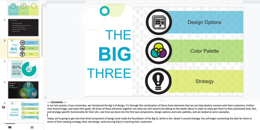 The examples below are from a seven-part lunch & learn series on a new website platform, given for the Sales audience.